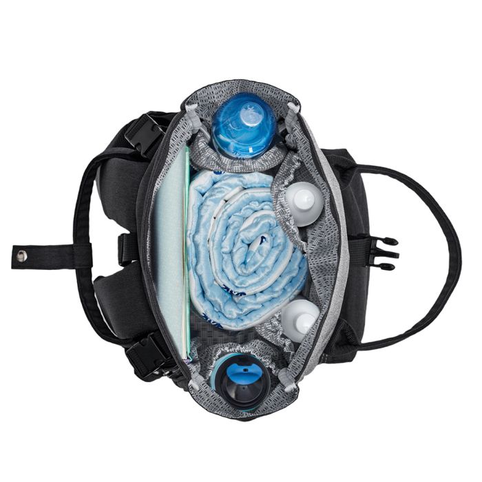 Moonpack is equipped with a special pocket for wet wipes and bottles and an additional pocket for wet diapers or clothes.